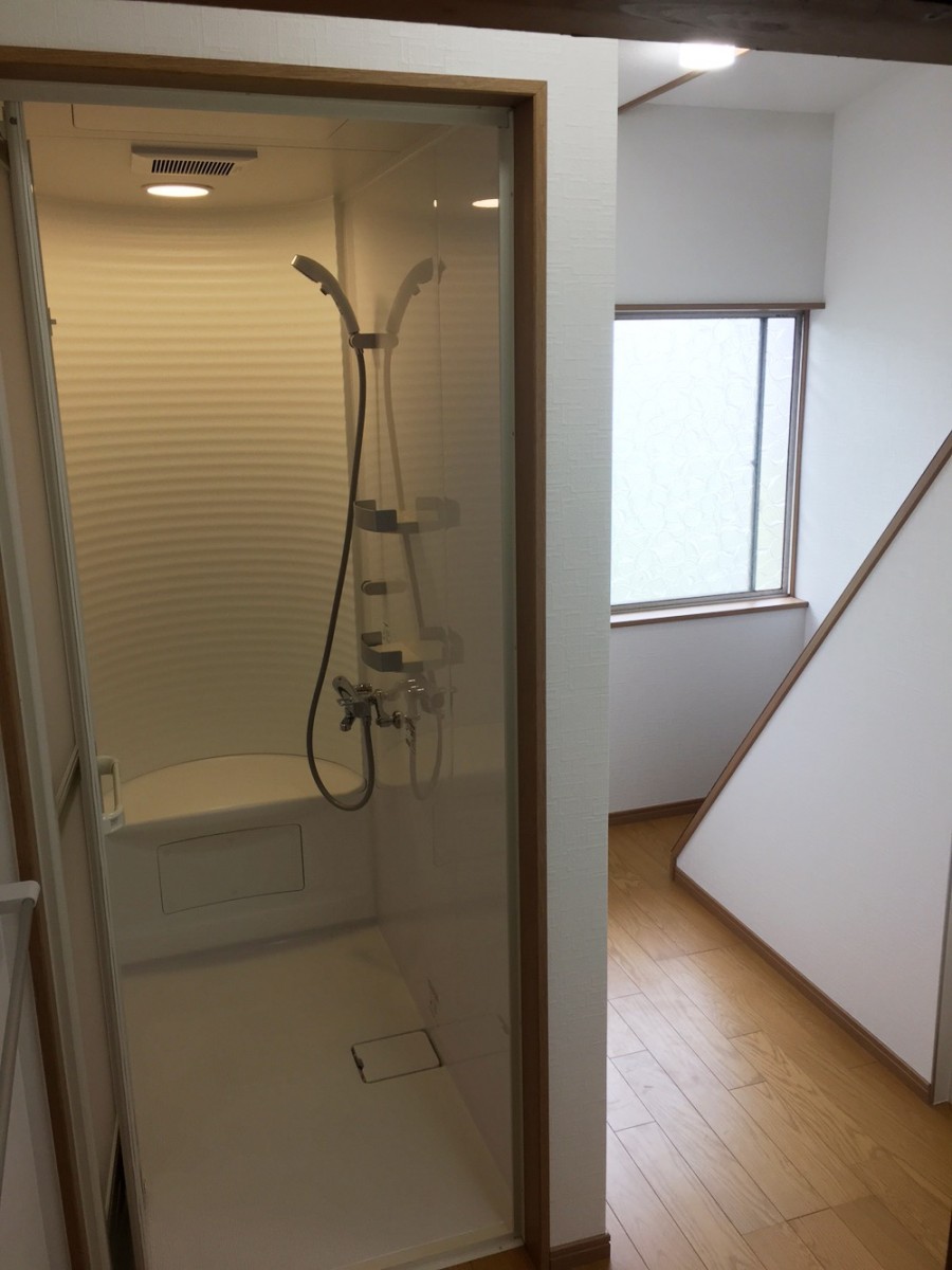 物置として使用していたお部屋にシャワールームとミニキッチンを入れました。お母様が足が不自由になり、お母様のお部屋の近くにシャワールームを設置しました。元々お風呂が離れの家にあったので、大変だったそうです。今は楽に行けるので助かってますとの事です。ありがとうございました。