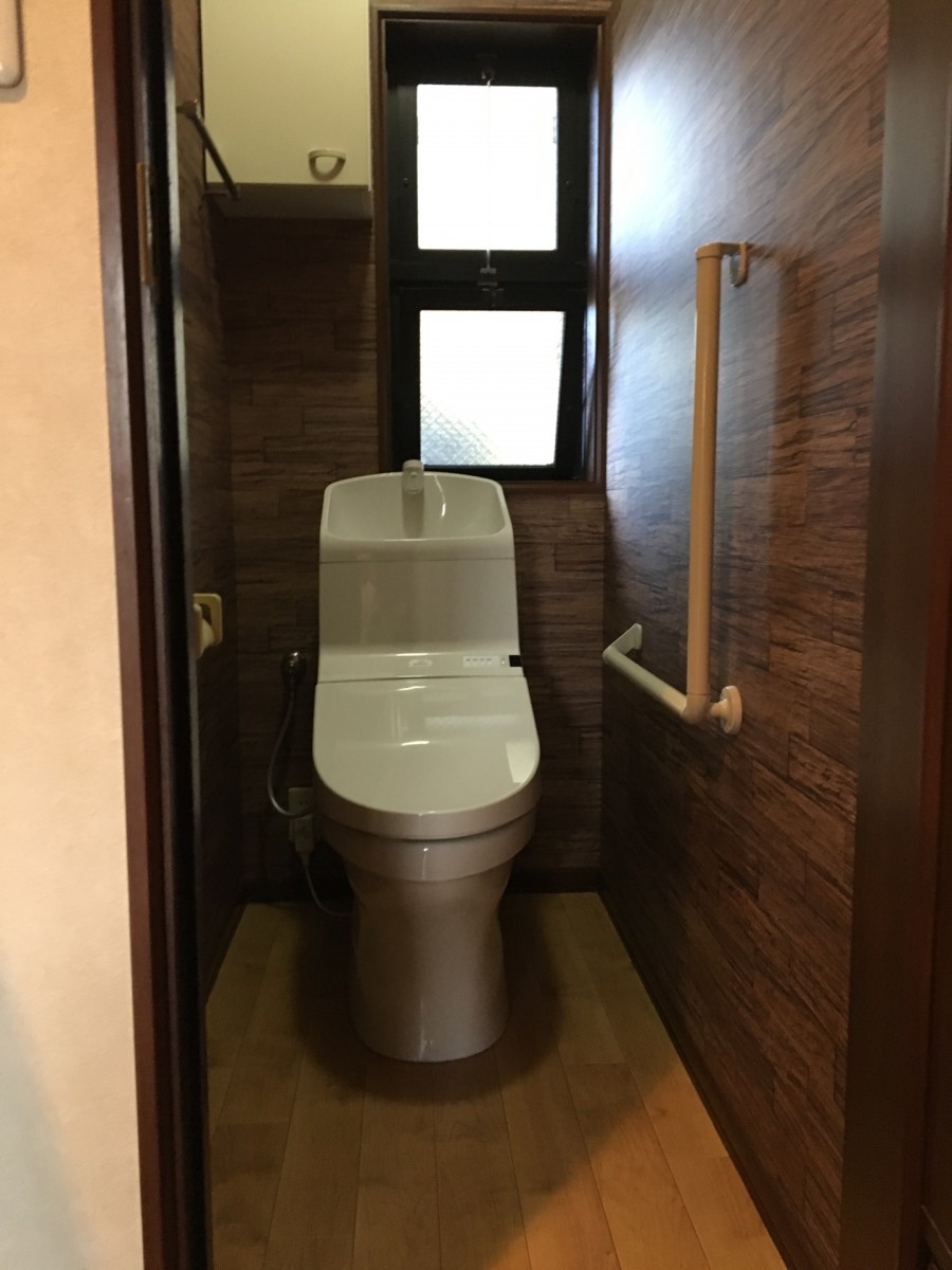 ウォシュレットからの水漏れで、新築当時からの便器でした。便器取り替えするならと、内装も同時に貼り替えしました。トイレの雰囲気も変わり大変喜ばれました。ありがとうございました。
