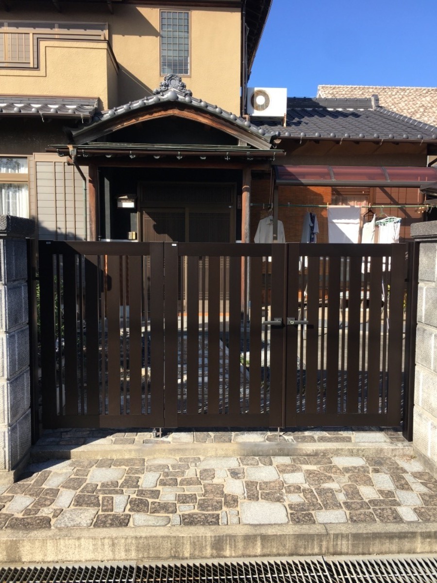 新しい三枚仕様の門扉に取替えしました。土間の石もハツリの時に綺麗に取れ、再利用して違和感なくおさまりました。ありがとうございました。
