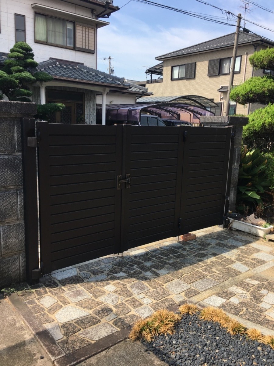 津島市H様邸3枚折門扉取替です。